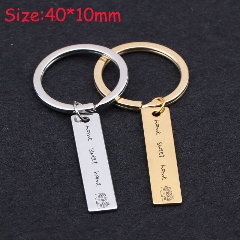 New Home Keyhain Hand Stamped Home Sweet Family Key Ring Gift New