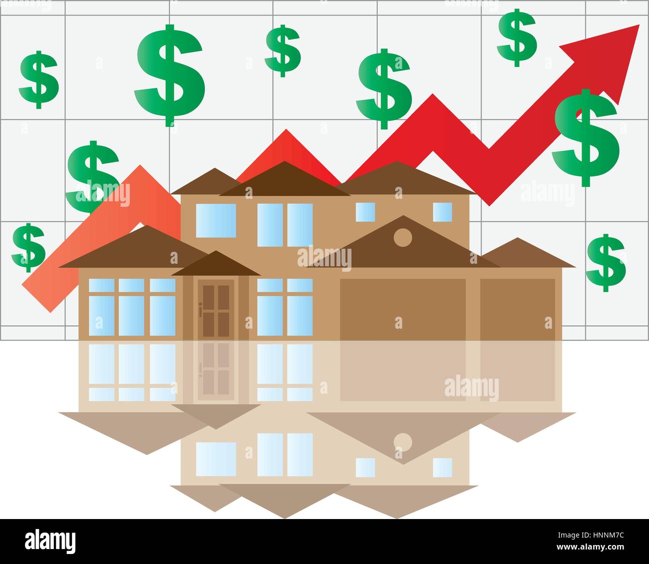 Home Value Rising Chart With House Arrow Dollar Signs Graph Stock