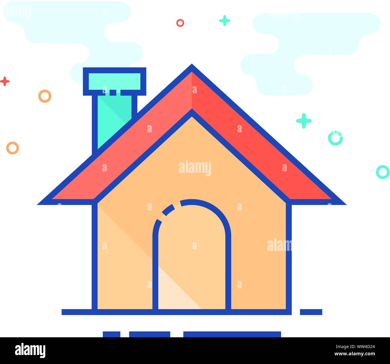 Home Button Icon In Outlined Flat Color Style Vector Illustration