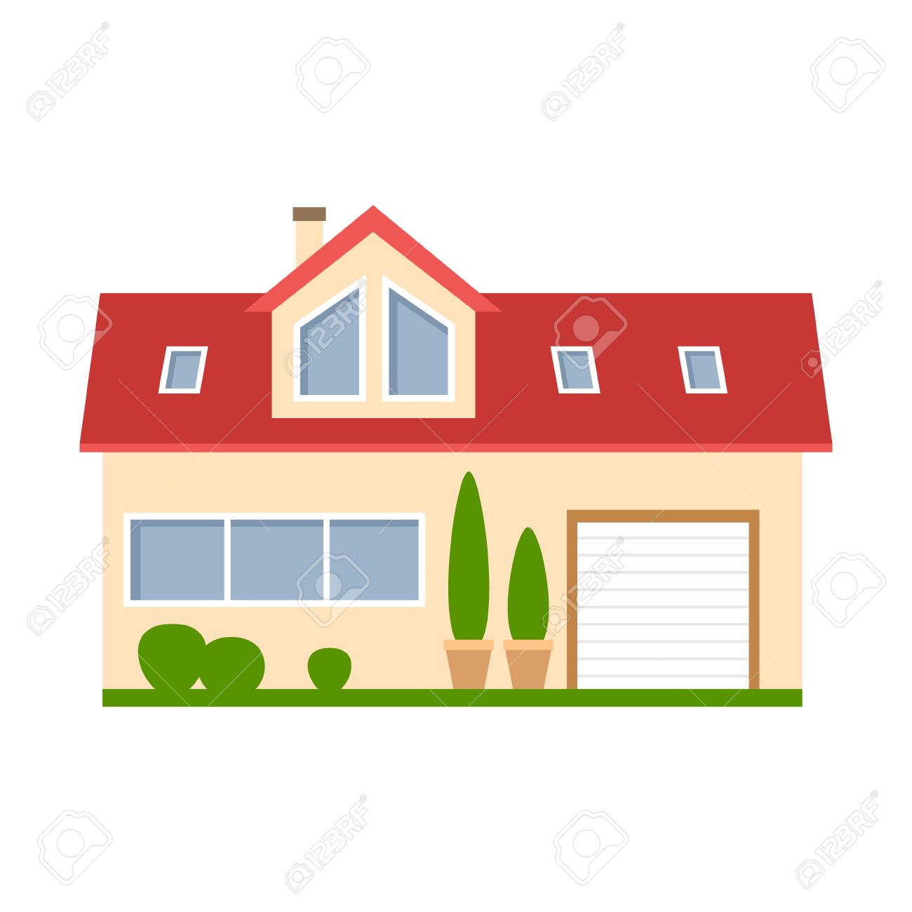 Isolated Cartoon House Simple Suburban House With Garage Concept