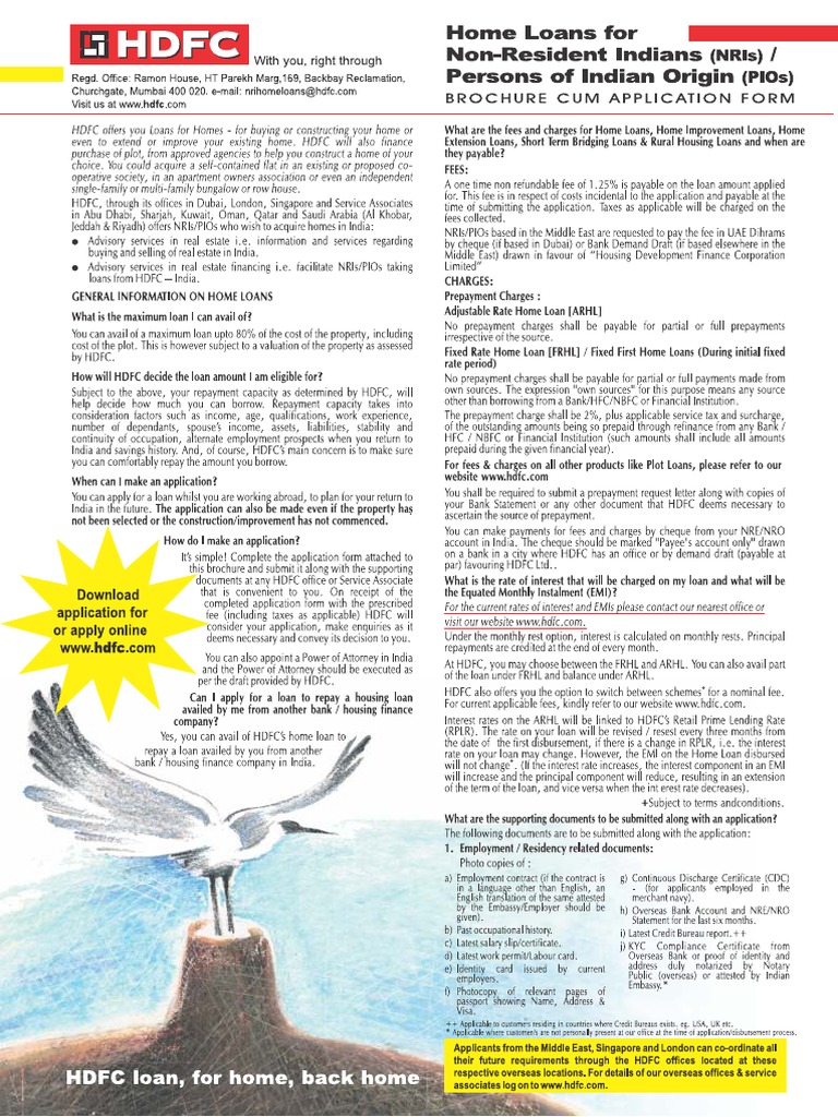 Hdfc Home Loan Application Form For Nri