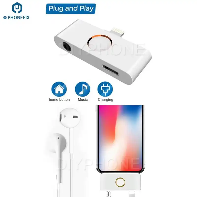 External Home Button 3 5mm Audio Jack Headphone Converter For