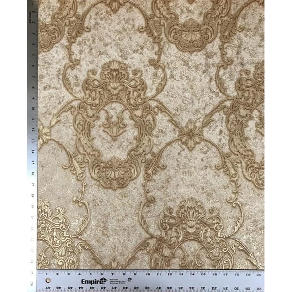 Shop Wallpaper Textured Victorian Damask Ivory Gold Metallic Wall