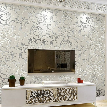 3d 10m Silver Floral Textured Non Woven Wallpaper Rolls Home Tv