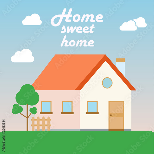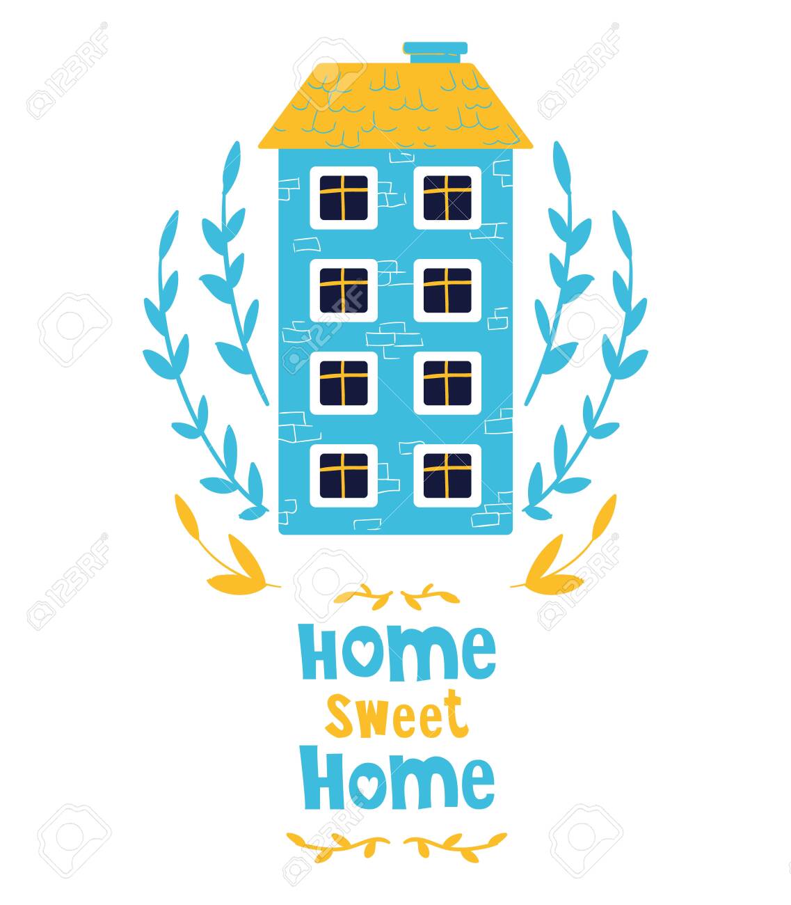 Vector Home Sweet Home Poster In Flat Cartoon Style With House