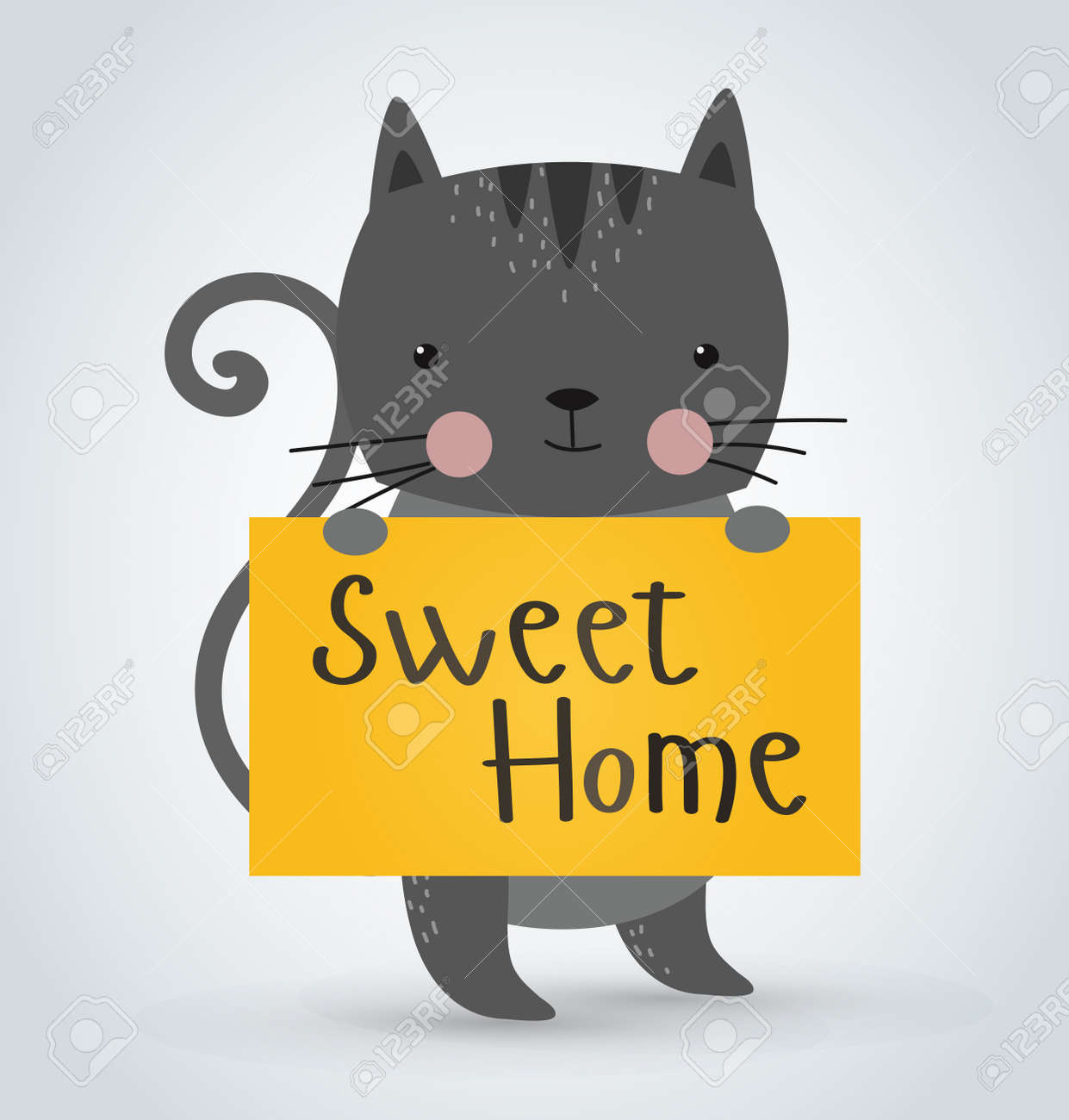 Cat Pet Animal Holding Clean Welcome Sweet Home Board Vector