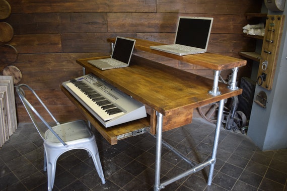 Industrial Style Music Studio Desk With Extending Keyboard Etsy