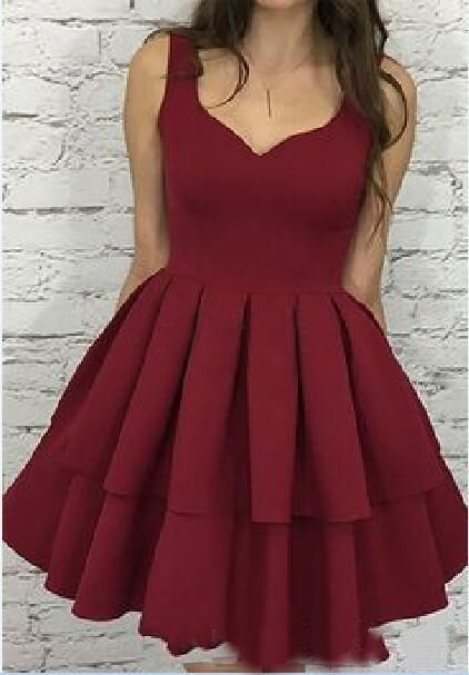 Simple Tieres Short Prom Dresses Satin Straps Dark Red Cocktail