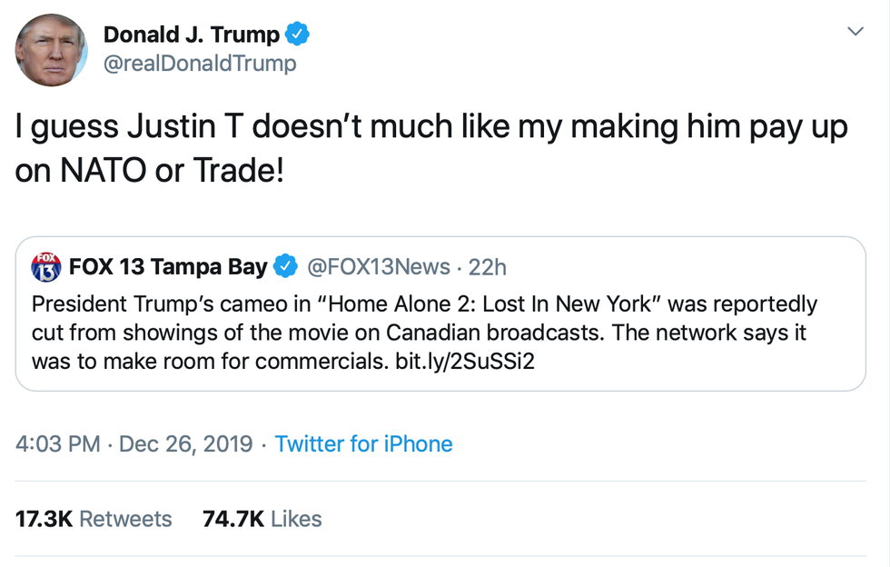 Trump Claims Justin Trudeau Personally Cut His Cameo From Home