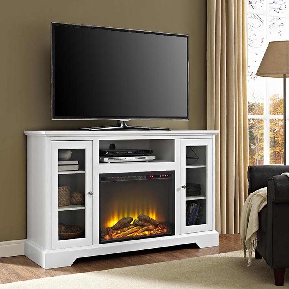 52 In Highboy Fireplace Wood Tv Stand Console White By Home