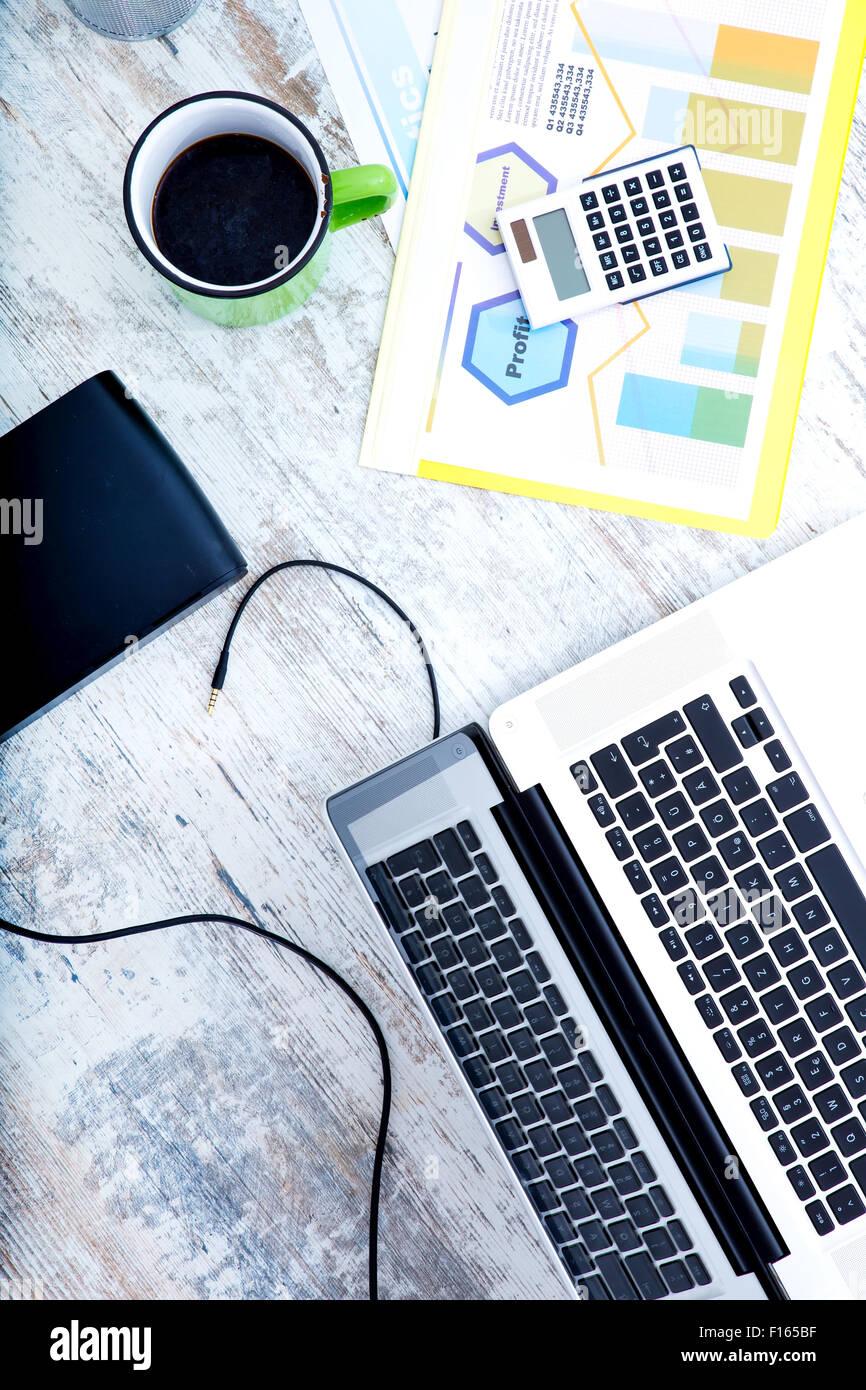 A Modern Home Office Setup On A Wooden Table Stock Photo