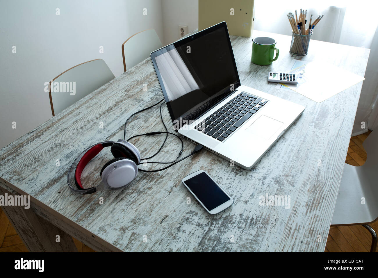 A Modern Home Office Setup On A Wooden Table Stock Photo 86802451