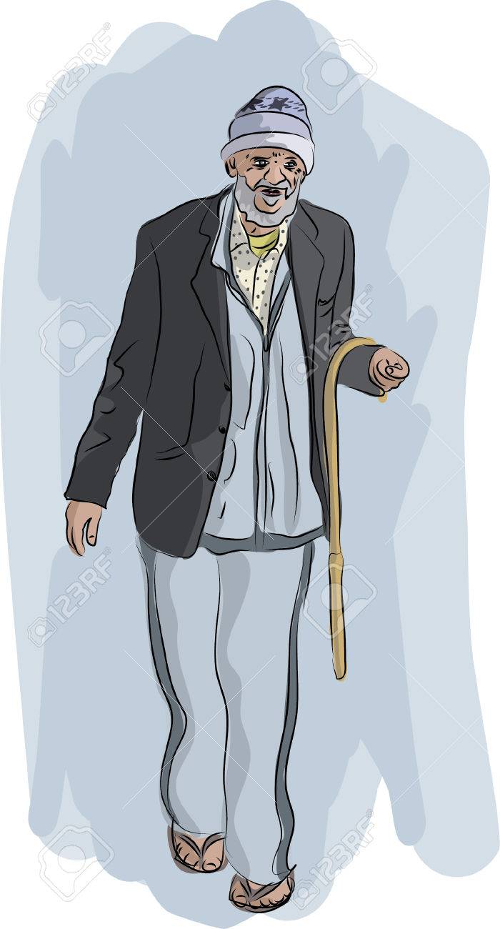 Old Homeless Man Walking With Smile Royalty Free Cliparts Vectors
